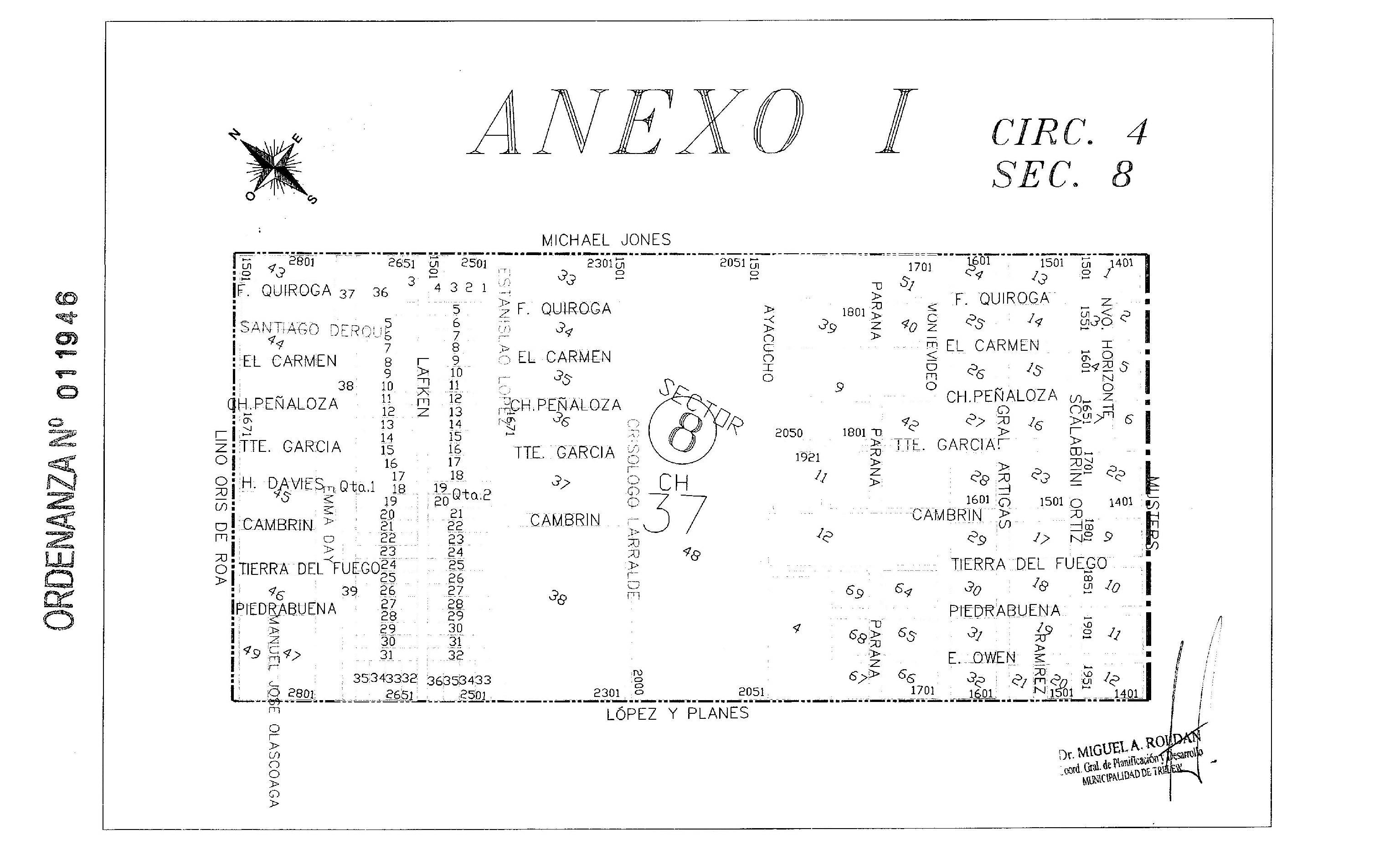 ARTÍCULO 4to.): DESÍGNASE, con el nombre de MANUEL JOSE OLASCOAGA a la calle divisoria entre las Manzanas 49 y 47 del Sector 8, Circunscripción 4 y su prolongación de acuerdo al ANEXO I.