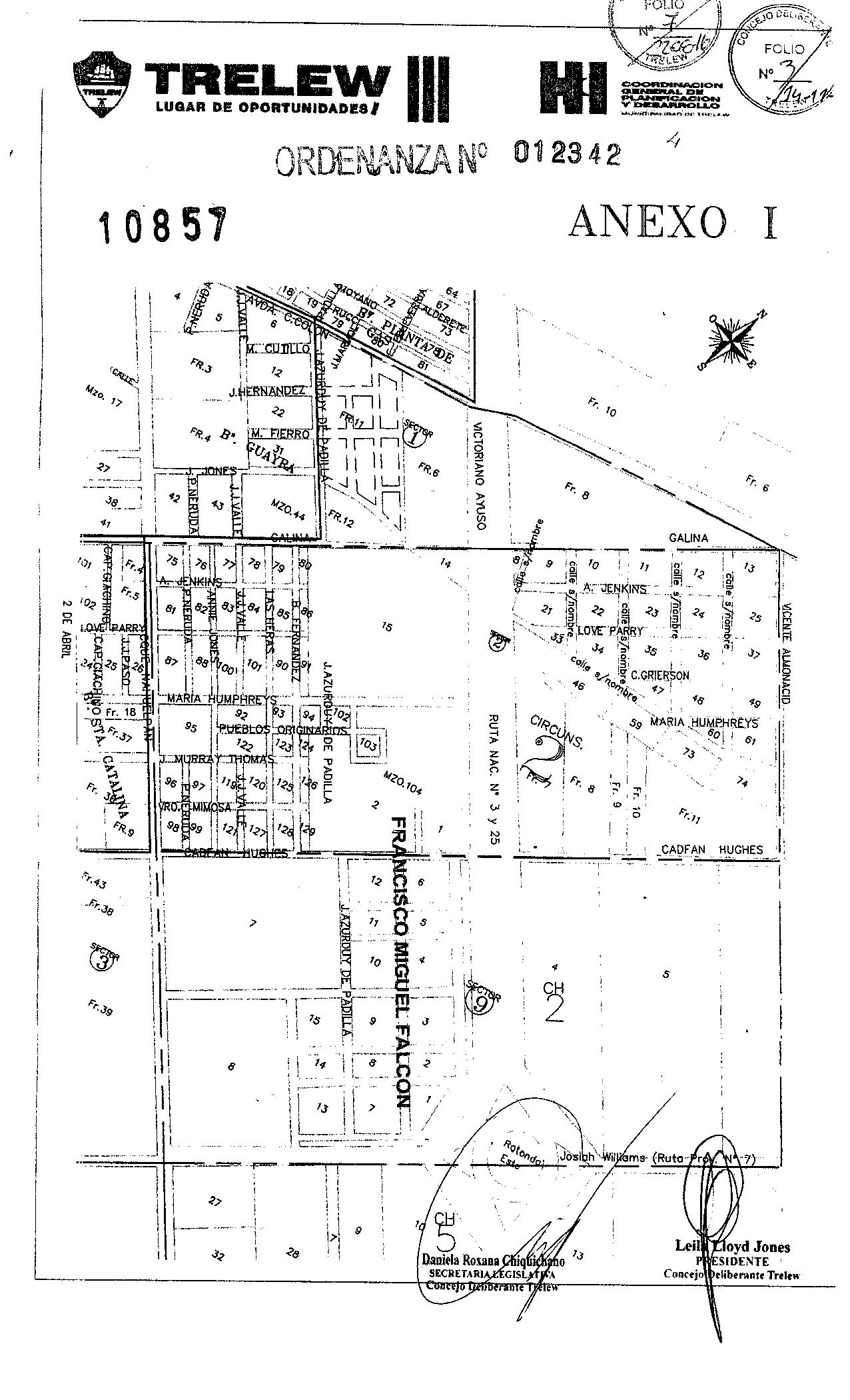 ARTÍCULO 1ro.): DESIGNASE “Francisco Miguel, FALCÓN” a la calle ubicada en la Circunscripción 2, Sector 9, Chacra 2, entre las Manzanas 6 y 12, identificada en el Plano adjunto que forma parte de la presente Ordenanza como Anexo I.