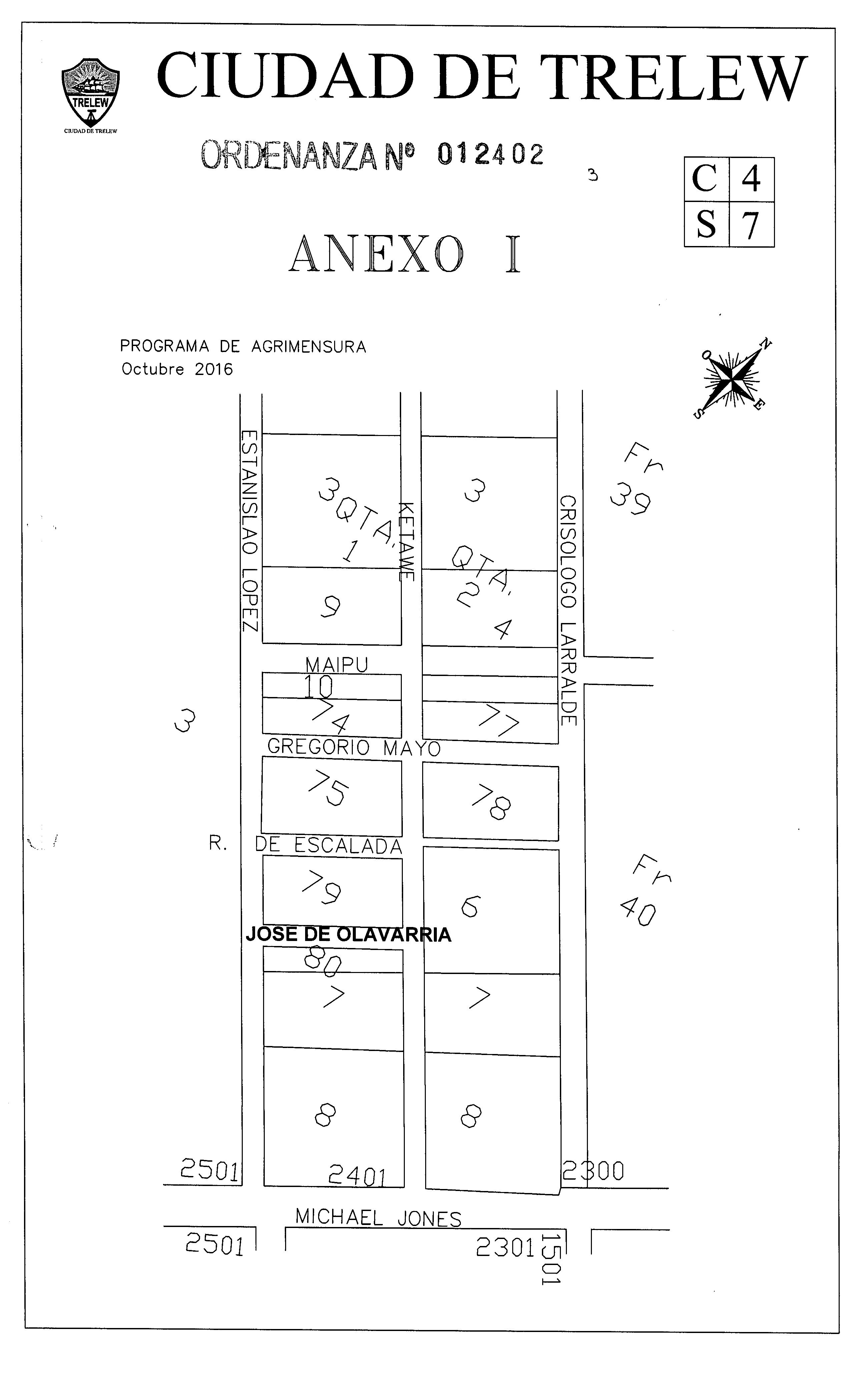 ARTICULO 3ro.): DESÍGNASE con el nombre de JUAN VUCETICH, a la divisoria entre las Quintas 1 y 2, del Sector 12, Circunscripción 2, de acuerdo al Anexo II.